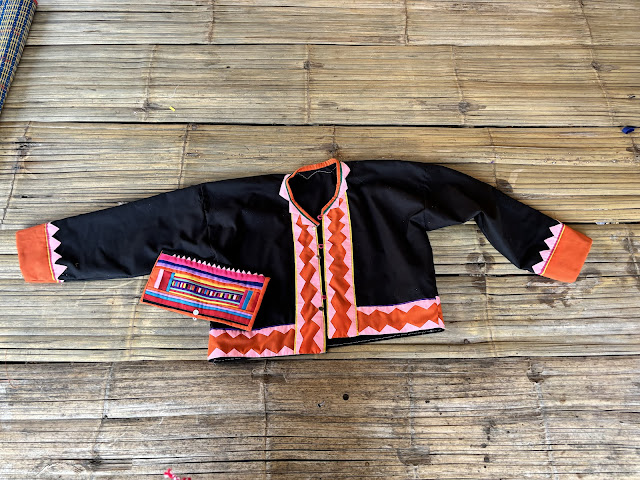 Se dedica a la agricultura, pero su verdadera pasión es el arte. Siempre encuentra un momento para coser, tejer, preparar la decoración de los espacios sagrados o tocar alguno de los instrumentos tradicionales. Es su motor. Y lo que me encanta de ella es que tiene un don especial para combinar los colores de sus diseños que siempre son únicos.